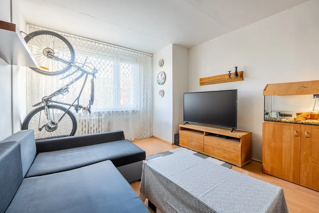 • Prostorný obývací pokoj se vstupem na zasklenou lodžii, ideální pro posezení či relax.