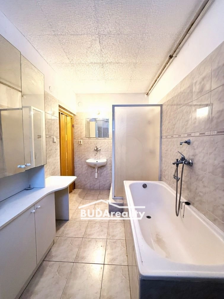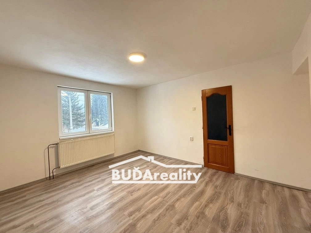 Prostornější bytová jednotka o dispozici 3+1 prošla celkovou rekonstrukcí kromě koupelny a wc. Do této části domu se vstupuje vstupuje z hlavní ulice. Za vstupem se hned nachází velkolepá kuchyň s obývacím pokojem. Zde si můžete přitopit i krbovými kamny. Ve všech místnostech leží na podlaze nová plovoucí podlaha. K dokonalosti chybí pouze kuchyňská linka, kterou si můžete udělat k obrazu svému. Další dominantou a obrovským prostorem působí koupelna, která byla zrekonstruována před 15 lety. K dispozici tu je rohová vana, vanička sprchového koutu a umyvadlo. Dále tu je plynový kotel a bojler na ohřívání vody. Samostatné wc se nachází před vstupem do prostorné koupelny. Po schodišti se dostanete do horní části domu, kde se prostorná 2 průchozí pokoje. V jednom z nich je menší podkrovní místnost, která by mohla po úpravách sloužit i jako šatna. V patře se nachází kromě chodby další 2 menší podkrovní místnosti, které po úpravách mohou sloužit jakou koupelna nebo šatna.
