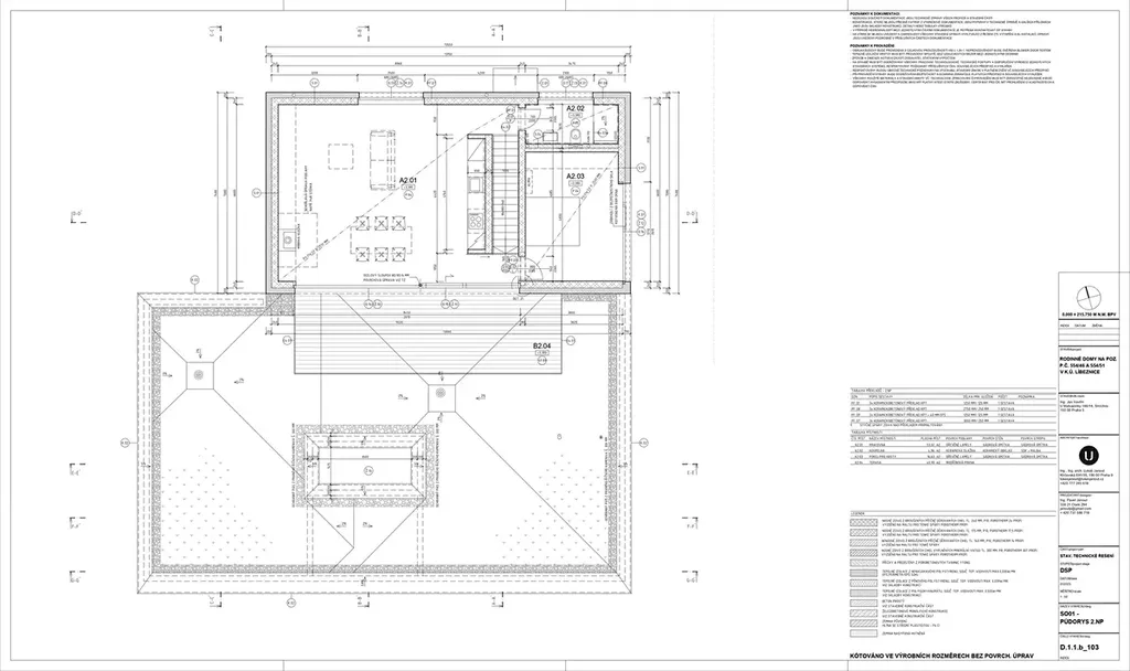 Užitná plocha 288 m² (z toho podlahová plocha 227 m², garáž 41 m², terasy 86 m²), zastavěná plocha 300 m², zahrada 904 m², pozemek 1216 m².