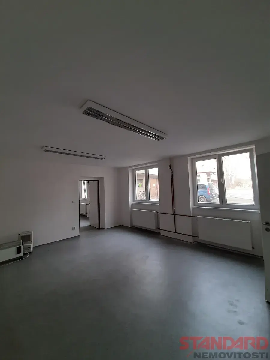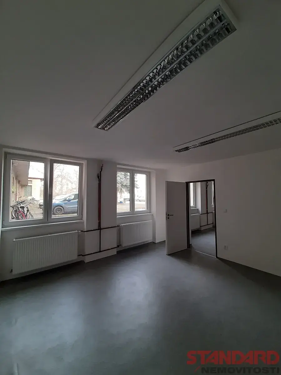 Prostory tvoří dvě průchozí, dveřmi oddělené místnosti (2x 25 m2) s okny orientovanými do klidného dvora se vzrostlou zelení + sklad o velikosti 16,2 m2. Prostor je nově zrekonstruovaný, světlý a plně vyhovující jako kancelářské prostory vhodné jak pro administrativu a servisní zázemí firmy, tak pro lehkou výrobu, kompletaci či montáž menších výrobků.