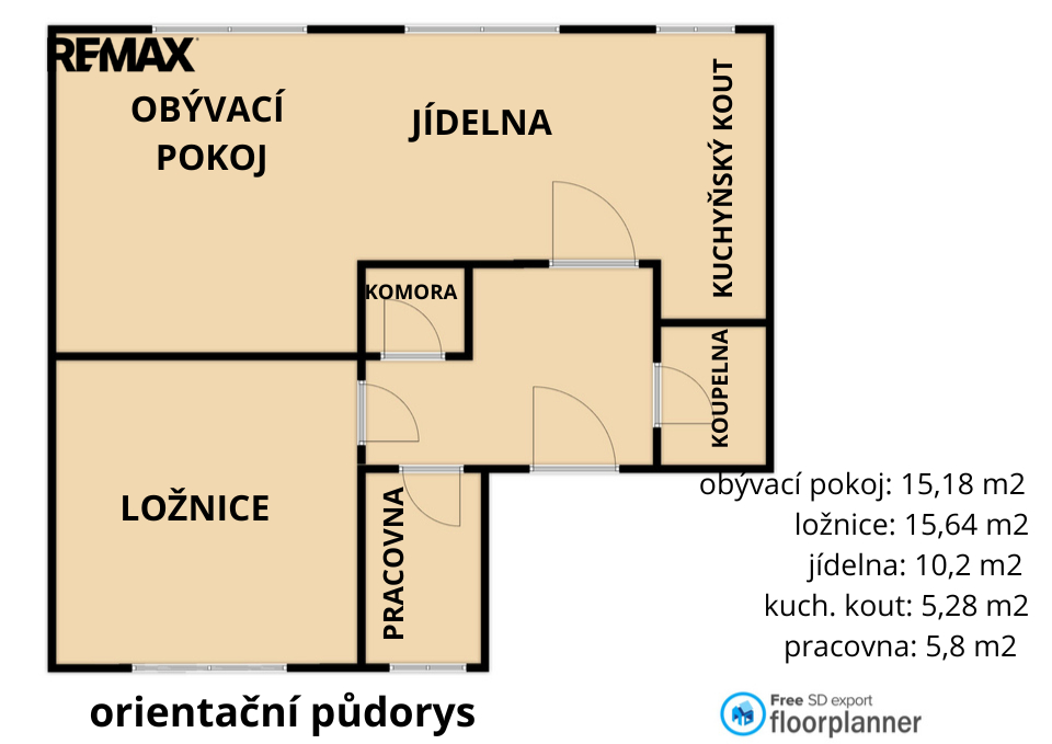 ✔ samostatná ložnice + pracovna (home office bez kompromisů)