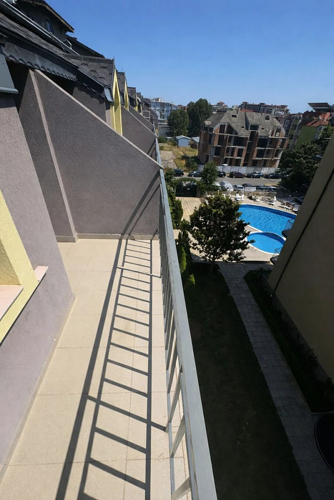 Z objektu je výhled na bazén komplexu, který vytváří příjemnou a klidnou atmosféru. Studio je ideální jak pro osobní rekreaci, tak pro pronájem.