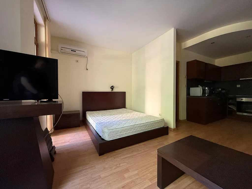 Prostorné a světlé studio se nachází v prvním patře, má funkční uspořádání a pohodlnou obytnou plochu 55 m², která umožňuje pohodlné posezení, spací kout a kuchyňský kout.
