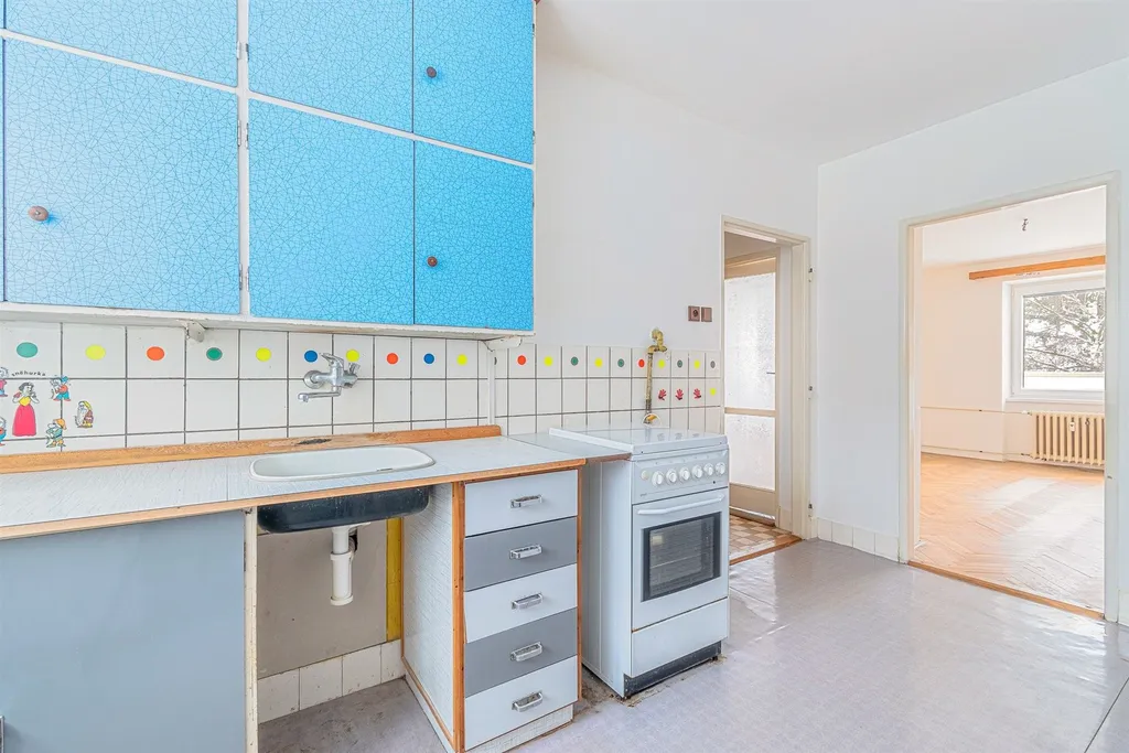 Byt je díky cihlovému zdivu a současným dispozicím možno upravit dle potřeb. K domu příjezd po slepé asfaltové komunikaci, s možností příjezdu až ke vchodu do domu.