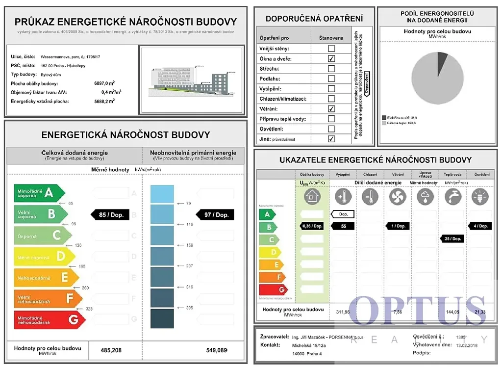 Třída energetické náročnosti budovy je dle vyhlášky 78/2013 Sb. klasifikována jako B.