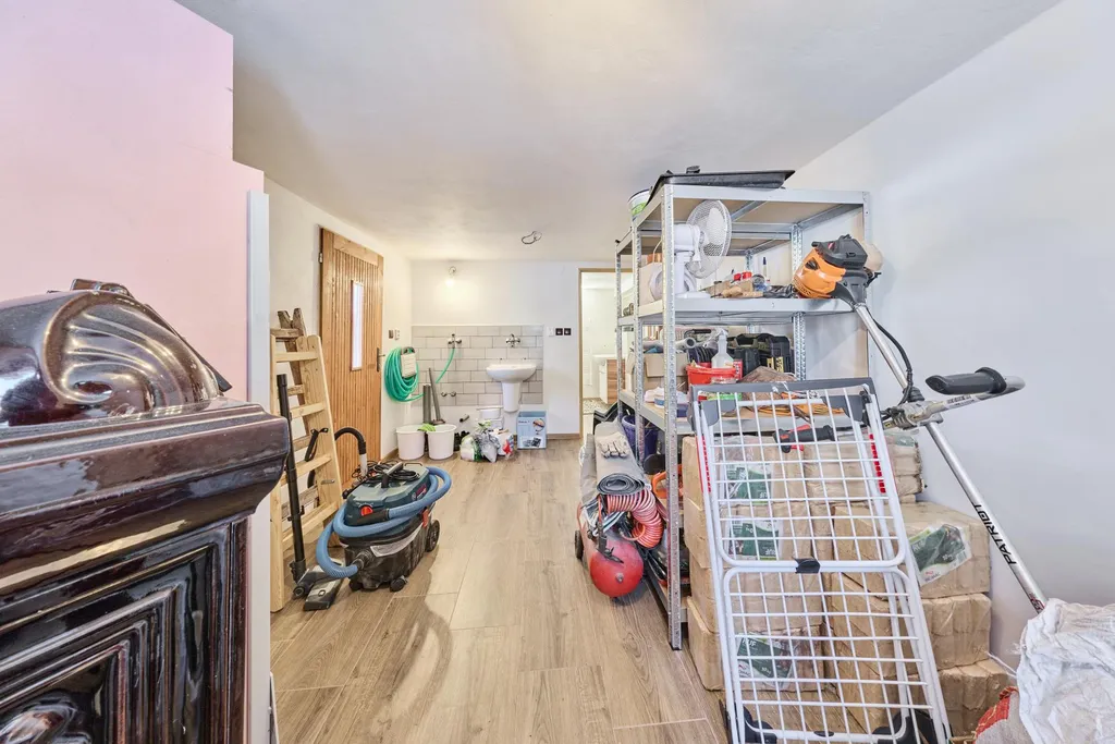 Vytápění celé chalupy zajistí krb s rozvodem. Voda je pitná z místního vodovodního řádu, elektřina 230/400V, odpady jsou řešeny jímkou za domem. Střecha je nová opatřena plechovými šablonami. Podlahy: dřevěné, dlažba i plovoucí podlahy. Část půdy nad světnicí lze dále využít k dobudování dalších pokojů. Parkování přímo u chalupy na zpevněné komunikaci.