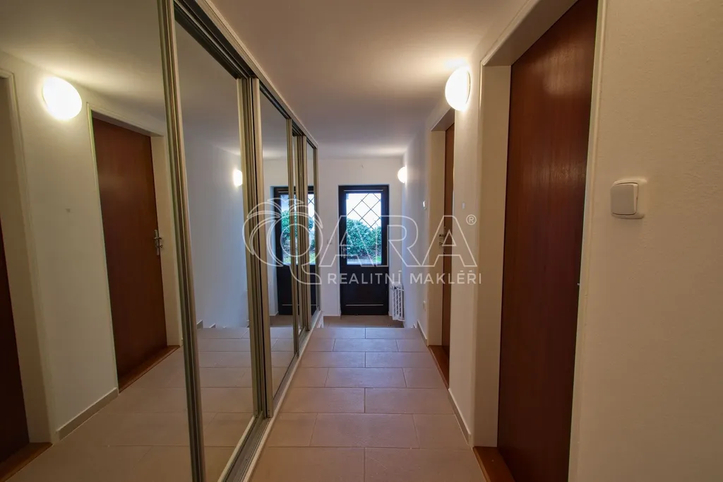 Samotný dům má zastavěnou plochu 264 m2, podlahovou plochu 417 m2, dvě garážová stání a rovinatou zahradu s velikostí 1000 m2. Vnitřní dispozice domu jsou 6+1. Největší je obývací pokoj s krbem a vysokým stropem, je k dispozici i čtveřice koupelen. Firma zde může najít klidné zázemí naprosto odlišné od klasických kancelářských budov. Neváhejte, ozvěte se a rádi zorganizujeme prohlídku.