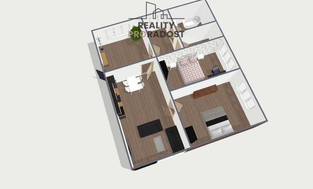 Byt je o velikosti 3KK s podlahovou plochou 92,76m2 Vám nabídne krásný balón i sklep, který je umístěný na patře u bytu o velikosti 2,05m2.