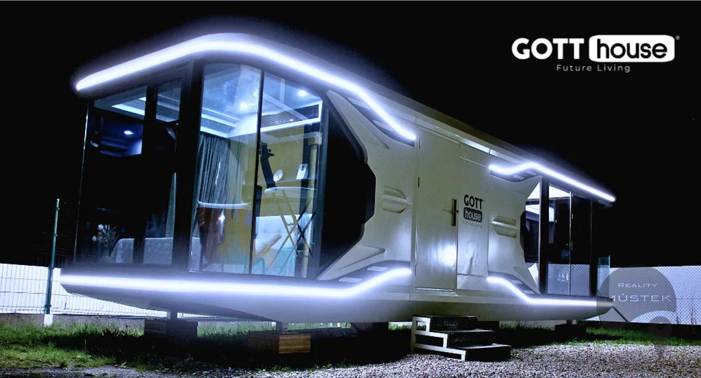 Ráda bych Vám představila novinku na trhu. Jedná se o moderní, elegantní a energeticky úsporné bydlení. Kompletně na klíč s termínem dodání 4 měsíce od objednání. Lze umístit i na nestavební pozemek. Je to ideální volba pro ty, kteří chtějí svobodu, pohodlí a flexibilitu bez kompromisů a potřebují vyřešit své bydlení v krátkém čase. Náš GottHouse je z ocelové konstrukce v kombinaci s hliníkem a odolným dvojitým či trojitým sklem zabezpečující tepelnou izolaci. Váha je 10 tun. Jedná se o 2kk s výměrou 37 m². Rozměry jsou 11,5 m x 3,2 m.
