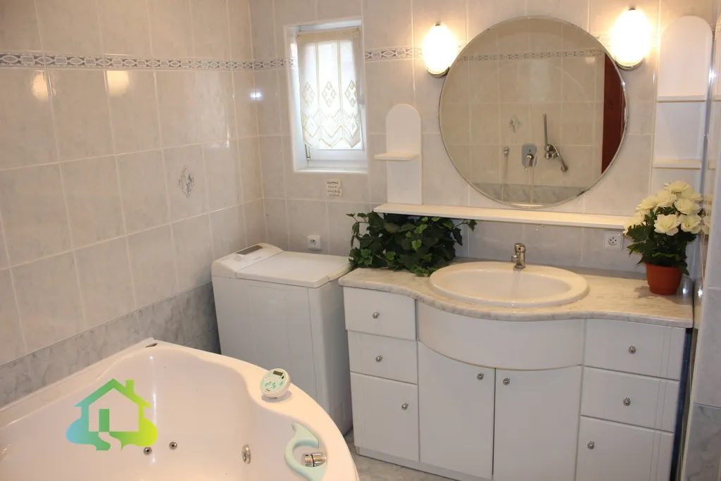 Přízemí nabízí kuchyni s jídelnou (20 m²), samostatný pokoj (19 m²) a koupelnu s masážní vanou, sprchovým koutem a WC. Kuchyně je vybavena sporákem, jídelním stolem. V prvním patře na Vás čeká velkorysý pokoj (41 m²), prostorná šatna (17 m²) a další koupelna se sprchovým koutem a WC.
