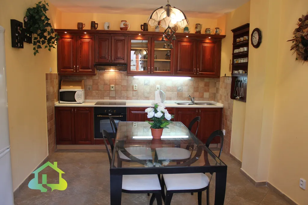 Přízemí Vás přivítá útulným obývacím pokojem (19 m²) a plně vybavenou kuchyní (17 m²) se sporákem, mikrovlnnou troubou. Srdcem této části je však velkorysá společenská místnost o rozloze 63 m² – ideální prostor pro rodinné oslavy, setkání s přáteli nebo prostě jen pro zábavu. K dispozici je zde kulečníkový i pingpongový stůl. Přímo ze společenské místnosti se otevírá cesta na zahradu. V prvním patře se nachází tři prostorné pokoje (23, 34 a 31 m²), všechny částečně zařízené nábytkem, a koupelna se dvěma sprchovými kouty a dvěma WC.