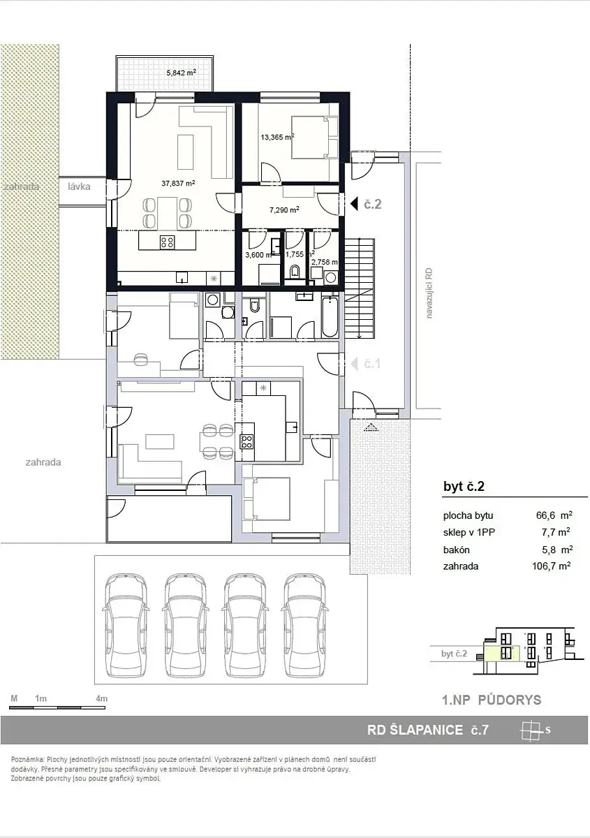 Byt č.2 je umístěn v 1.NP