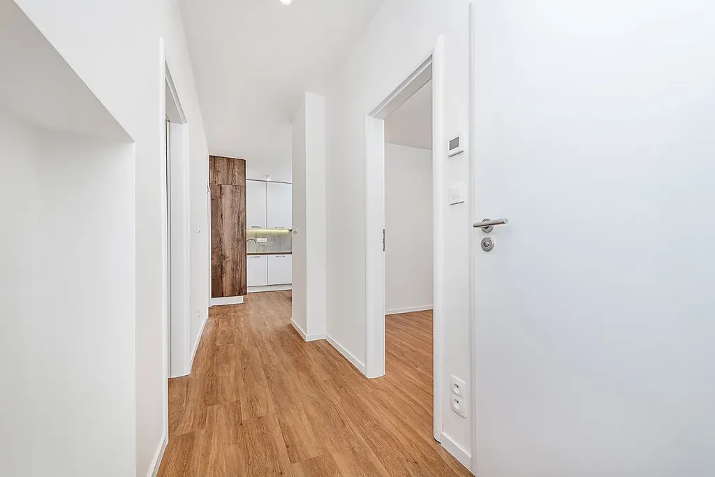 Dispozici bytu tvoří tři neprůchozí ložnice, kuchyně s jídelnou / obývacím pokojem a prostorná koupelna.