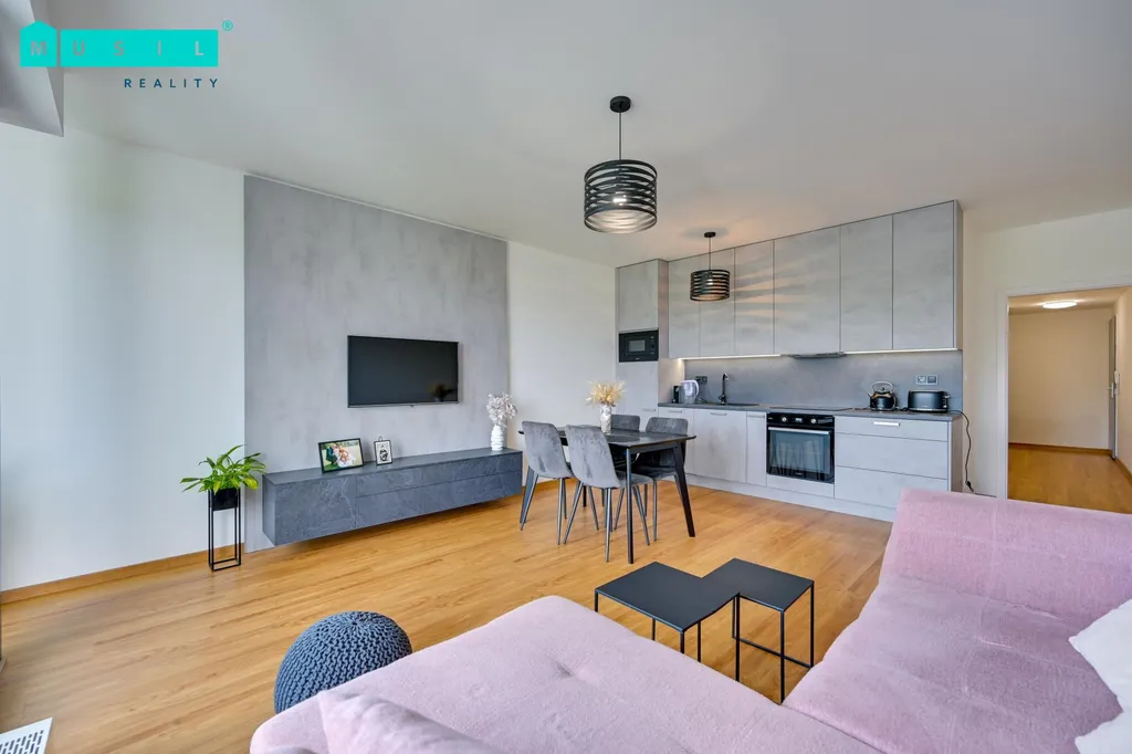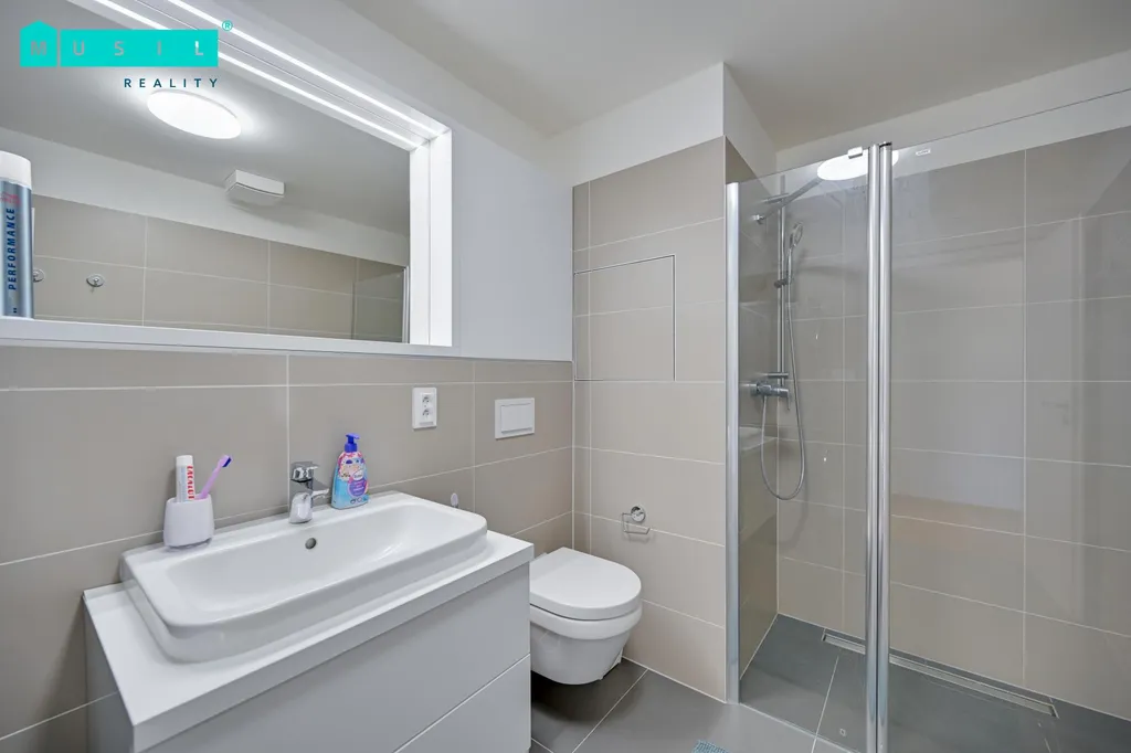 Pronájem krásné kompletně zařízené novostavby bytu s balkónem, sklepem a parkovacím stáním nacházející se na ulici Věry Pánkové v Olomouci. Byt má dispozici 2+kk, jeho výměra činí 58 m2 + sklep 5,1 m2, je umístěn ve 2. NP bytového domu s výtahem. Bytová jednotka zůstává kompletně zařízena. Luxusní a praktická kuchyňská linka je vybavena vestavěnými spotřebiči: indukční varná deska, horkovzdušná trouba, digestoř, mikrovlnná trouba, myčka nádobí. Obývací pokoj je zajištěn sedačkou a televizní sestavou vyrobenou na míru. V koupelně je k dispozici prostorný sprchový kout, umyvadlo se skříňkou, zrcadlo a WC. Samostatná ložnice disponuje šatní skříní, která nabídne dostatek úložného prostoru a manželskou postelí. Prostorný balkón s výhledem do zeleně, skvěle poslouží pro relaxaci po náročném pracovním dni v letních měsících. Celkový dojem nemovitosti působí velmi vkusným a luxusním dojmem. Jedná se o novostavbu bytu, který čeká na svého nového nájemníka. Parkovací garážové stání se pronajímá za příplatek 1.000 Kč. Toto velmi hezké klidné bydlení se nachází v širším centru města Olomouce v těsné blízkosti relaxační zóny řeky Moravy. Výborná dopravní dostupnost na sjezdy na dálnici. Cena 18.500 Kč/měsíc. Cena je uvedena bez záloh na služby, které činí cca 2.800 Kč/měs./elektřina přepisem na nájemníka, parkovací místo za poplatek 1.000 Kč/měs, jistota ve výši dvou měsíčních nájmů. Provize RK jeden měsíční nájem + DPH. Volný od 1.3.2026. Doporučujeme prohlídku.