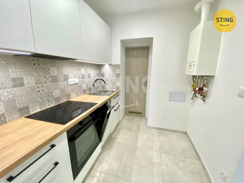 Dispozice bytu zahrnuje zádveří s úložným prostorem, moderní kuchyňskou linku vybavenou vestavnou myčkou, komoru, prostorný obývací pokoj, ložnici a koupelnu se sprchovým koutem. Vytápění je zajištěno vlastním plynovým kondenzačním kotlem, což zaručuje efektivní a úsporný provoz.