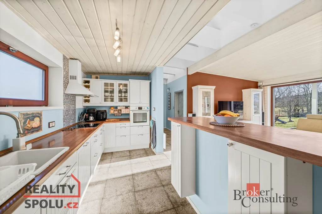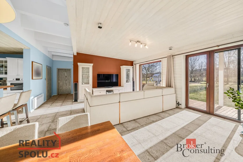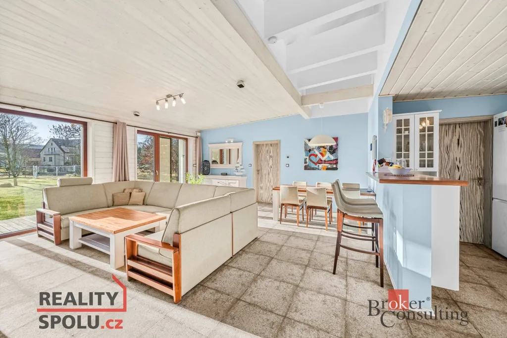 Jednopodlažní vila o dispozici 5+kk a obytné ploše 145 m² je zasazena do rozlehlého pozemku o velikosti 1 523 m² na samém okraji obce, s ničím nerušeným výhledem do zeleně okolních zahrad a luk. Promyšlená orientace ke světovým stranám zajišťuje dostatek denního světla po celý den a přirozené propojení interiéru s exteriérem.