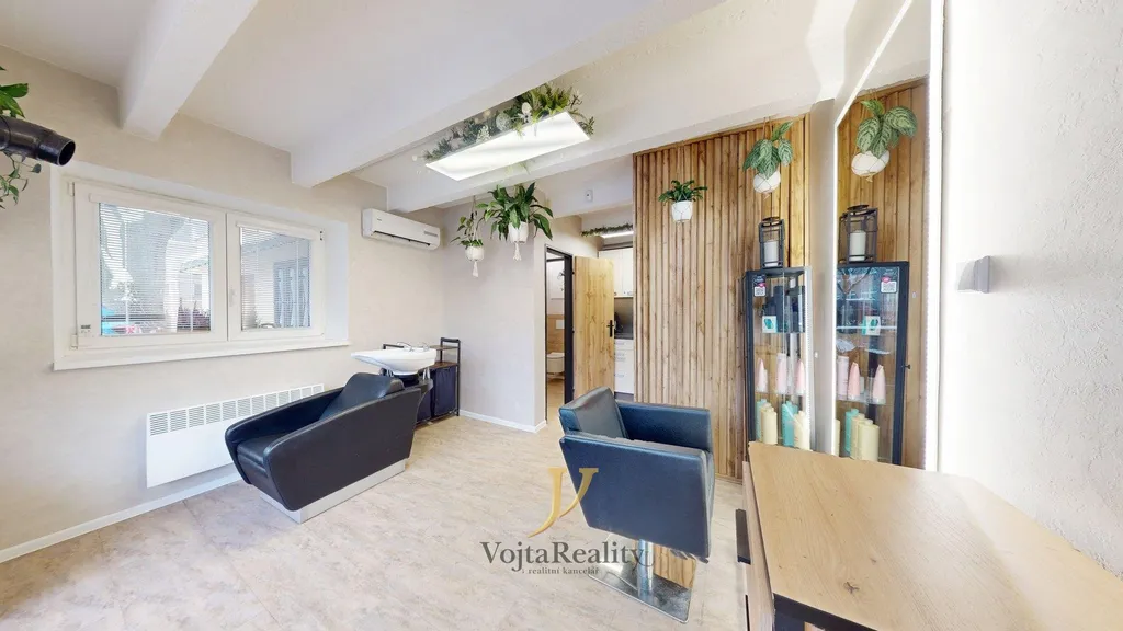 Provozovna má samostatný vchod, plastová okna s dvojskly a PVC podlahu. Prostory se sestávají z hlavní místnosti, kuchyňky a sociálního zázemí. V zázemí najdete myčku, pračku se sušickou, mikrovlnou troubu, kávovar, lednici. V kadeřnictví je instalována klimatizace, rekuperace, čistička vzduchu, zabezpečovací systém. Provozovatelka využívá online rezervační systém, který bude otevřený ke sdílení.