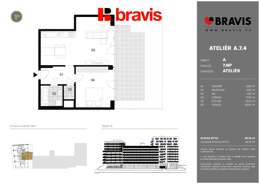 Představujeme Vám exkluzivní nabídku prodeje bytové jednotky 2+kk o celkové podlahové ploše 69m², ke kterému náleží prostorná terasa 50 m² a sklep.