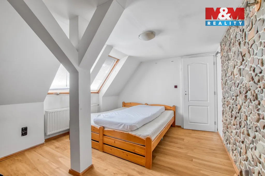 Je zde i prostorná půda, kterou lze využít pro další pokoje.