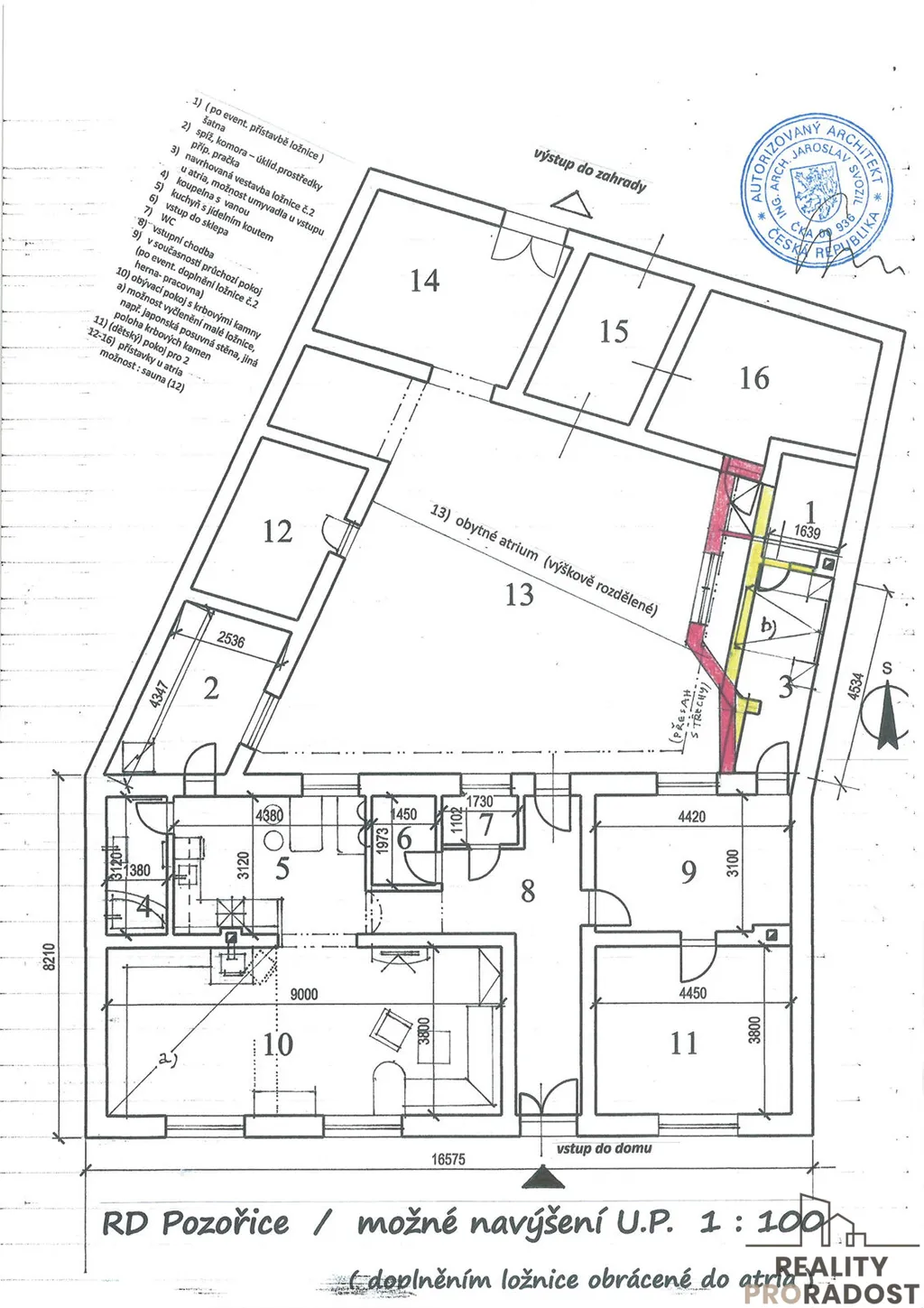 K rodinnému domu kromě vnitřní plochy místností patří navazující stavby o které by bylo možné rozšířit obytnou plochu a další místnosti. V uzavřeném dvoře domu dále se nachází technické místnosti, dřevník a prostor zastřešené terasy s možností instalace domácího wellness, který navazuje vstupem na okrasnou zahradu v mírném svahu s keři a ovocnými stromy.