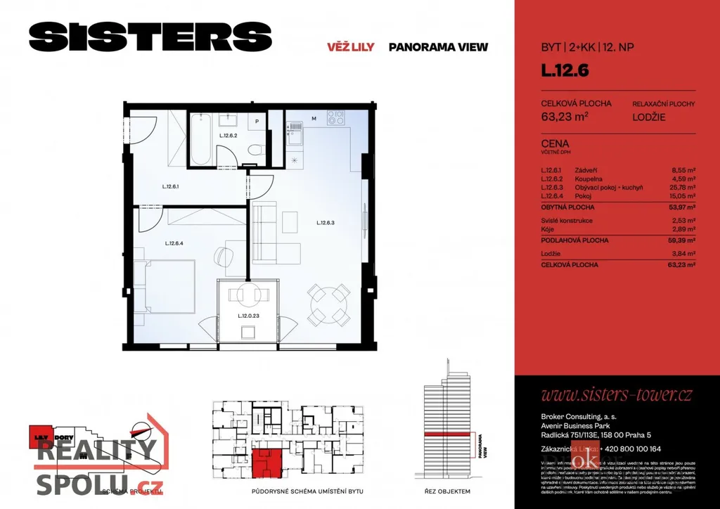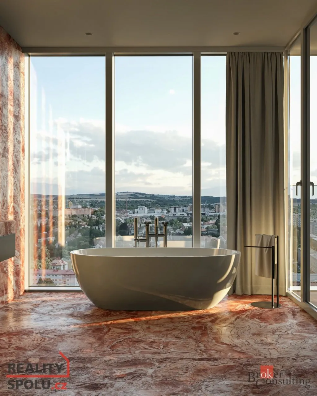 Na prodej byt 2+kk ve 12. nadzemním podlaží třetí nejvyšší budovy v ČR, projektu Sisters Tower Plzeň. Dům přináší technologický a komfortní standard, jaký v Plzni nemá obdoby. Byt je vybaven klimatizací, rekuperací, nízkoemisními okny a podlahovým vytápěním, díky čemuž zajišťuje ideální vnitřní prostředí po celý rok. Vše řízení systémem pro chytrou domácnost Loxone. Součástí každého z bytů je sklepní kóje a možnost dokoupení parkovacího stání v podzemních garážích.