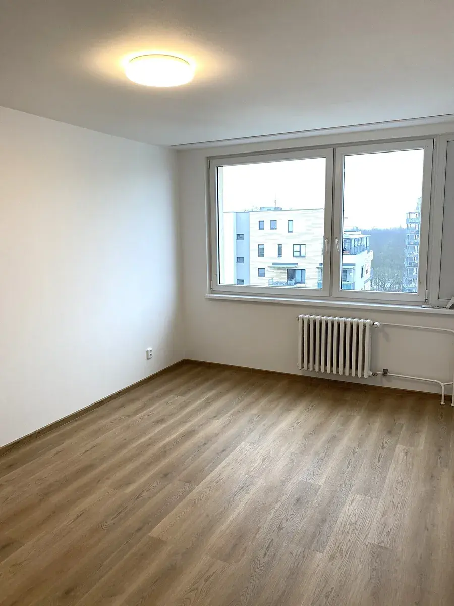 Byt v posledním (11) patře renovovaného panelového domu prošel nyní moderní rekonstrukcí. Je zde kuchyňská linka vybavená spotřebiči - indukční varná deska, horkovzdušná truba, mikrovlná trouba, myčka a velká lednice.