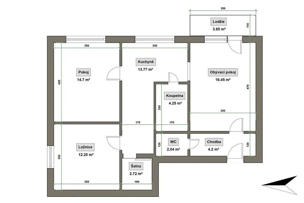 • celková plocha cca 72 m²