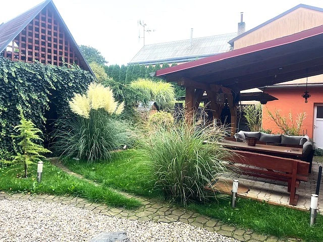 Dům je dispozičně řešený jako 5+kk a jeho velkým bonusem je prostorné a kryté posezení za domem se samostatnou kuchyní. Tento prostor poskytuje naprosté soukromí a navazuje na rozlehlou zahradu s ovocnými stromy, na které se nachází dřevěný domek. Zahrada je ideálním místem pro relaxaci, aktivity s rodinou nebo zahradničení.