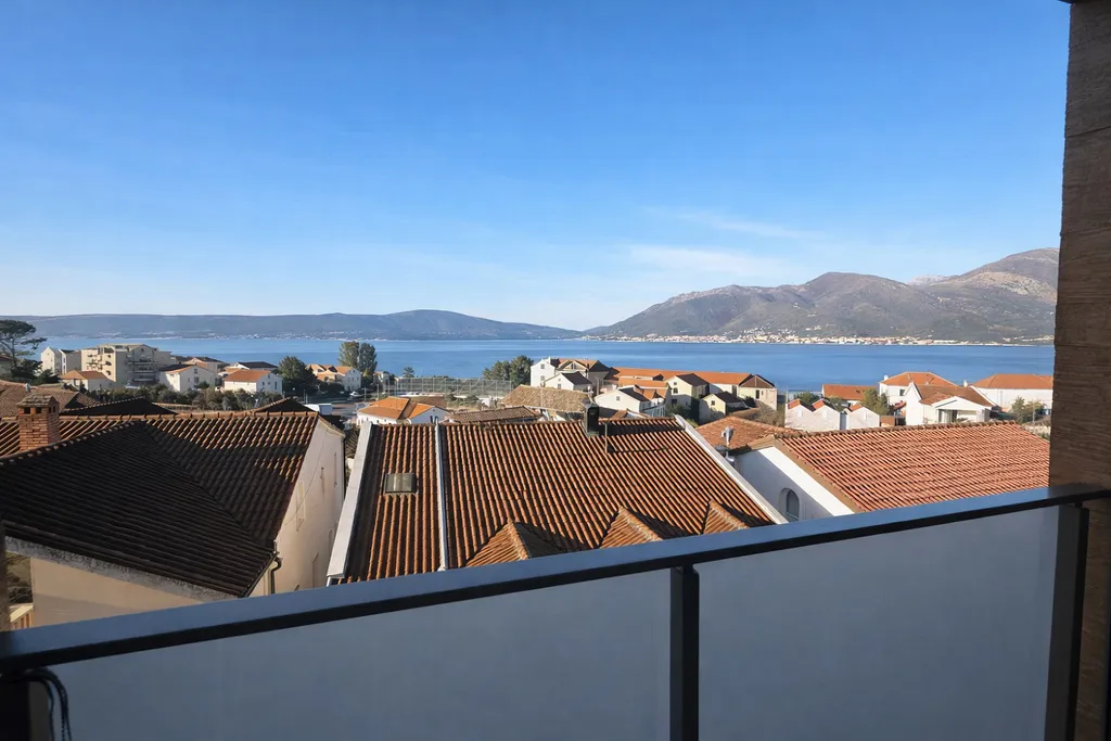 Apartmán je umístěn ve 3. patře moderní budovy a nabízí úchvatný panoramatický výhled na moře a celou Bokokotorskou zátoku. Součástí je soukromá garáž i vlastní parkovací stání, což zajišťuje maximální komfort a bezpečí.