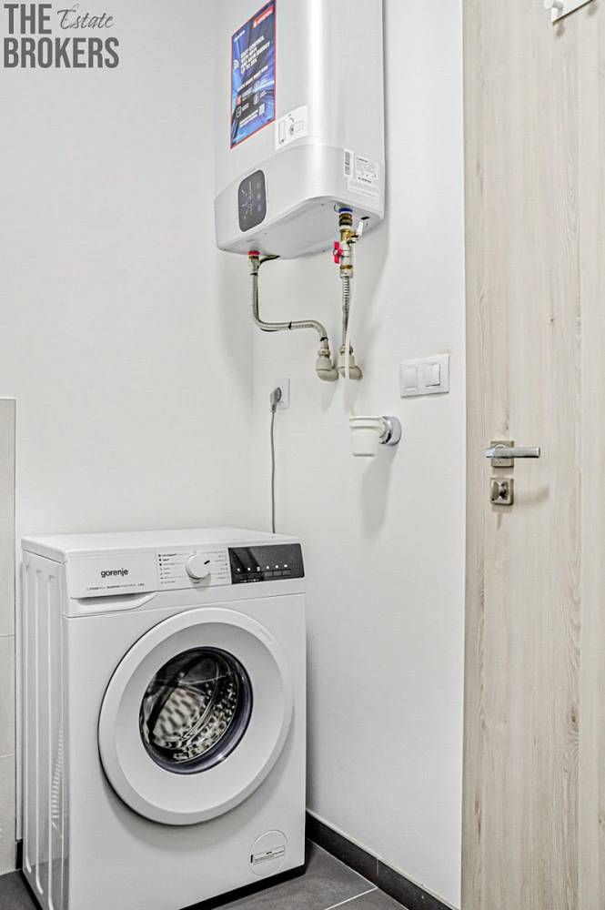 Byt je částečně vybavený a připravený k nastěhování. Součástí je moderní kuchyňská linka s vestavěnými spotřebiči: lednice, mrazák, varná deska, trouba a myčka. V koupelně se nachází pračka. K dispozici je také rozkládací pohovka, dvě prostorné šatní skříně a postel s kvalitními matracemi.