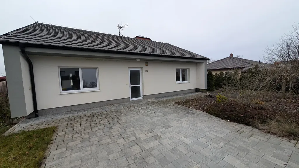 Moderní nízkoenergetický bungalov s terasou a zahradou – kolaudace 2017. Nabízíme k prodeji samostatný moderní a úsporný rodinný dům zkolaudovaný v roce 2017, který nabízí komfortní bydlení v klidném prostředí s výbornou dostupností. Dům je řešen jako jednopodlažní bungalov o dispozici 3+kk s prostornou terasou. Užitná plocha činí 71,61 m², zastavěná plocha 93,5 m² (142 m² včetně terasy) a pozemek má výměru 607 m². Stavba je provedena z kvalitních cihelných bloků, bez podsklepení a bez využití půdního prostoru. Dům je velmi úsporný na provoz – vytápění je zajištěno elektrickým kotlem s podlahovým vytápěním a doplněno krbovou vložkou na dřevo, která zajišťuje příjemnou atmosféru i možnost další úspory energií. Na pozemku je k dispozici parkovací stání pro osobní automobil. Zahrada poskytuje dostatek prostoru pro relaxaci, rodinné posezení i další využití. V místě je kompletní občanská vybavenost – škola, školka, obchody, lékař i sportoviště. Výborná je také dopravní dostupnost. Tato nemovitost je ideální volbou pro klienty hledající moderní, úsporné a bezstarostné bydlení.