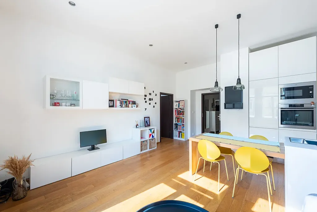 l přes svou renovaci má byt svou jedinečnou atmosféru, poskytuje velmi příjemné bydlení s výhledem na Emauzský klášter. Byt mohu doporučit pro jeho výborný stav. vynikající lokalitu a jedinečné místo v blízkosti památek a řeky Vltavy.