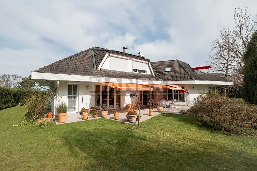 Dům s užitnou plochou 365 m2 se rozprostírá na lichoběžníkovém pozemku o velikosti 1.259 m2, z toho zastavěná plocha činí 201 m2 a zahrada 1.058 m2.