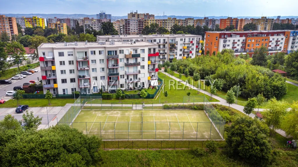 Nabízíme k prodeji novostavbu bytové jednotky o dispozici 2+kk (byt číslo A.511) s terasou, sklepem a dvěma vyhrazenými parkovacími stáními v klidné okrajové části města, na okraji sídliště Vltava, v těsné blízkosti lesa a Vrbenských rybníků. Byt se nachází v 5. NP ( posledním patře) zděného bytového domu s výtahem. Bytová jednotka má výměru 50m2 m2 + terasa o výměře 8,17 m2 + sklep o výměře 2,6 m2 a skládá se z: předsíně a chodby, kde je vestavná, prostorná vestavná skříň, koupelny s toaletou, ložnice a obývacího pokoje s kuchyňským koutem. Z obou místností je vstup na terasu. Byt je orientovaný na západ do vnitrobloku mimo silnici a má výhled do zeleně. V bytě zůstává kuchyňská linka na míru včetně spotřebičů, vybavení koupelny a vestavné skříně v chodbě, zbylé vybavení možno ponechat po domluvě.