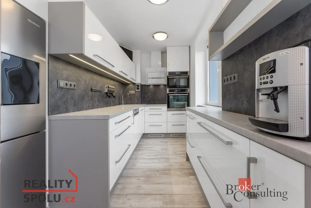 Byt o dispozici 3+kk o celkové výměře 65 m2 v bytovém domě o 36 bytových jednotkách se nachází v 3. nadzemním podlaží. Po vstupu do bytu se ocitnete v chodbě s vestavěnou skříní a věšákem. Z chodby můžete vstoupit na WC s umyvadlem a bydetem, do koupelny s vanou a do kompletně vybaveného obývacího pokoje s jídelnou s okny na severovýchod a krásným kuchyňským koutem s granitovým dřezem, americkou lednicí a všemi potřebnými spotřebiči. Z obývacího pokoje lze jít dál jihozápadně orientované části bytu - do pracovny s velkou vestavěnou skříní a stolem, nebo do ložnice, ve které je vchod na balkón.