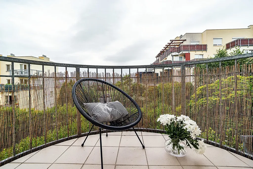 K příjemnému bydlení přispívá půlkruhový balkon s výhledem do zeleně, ideální pro relaxaci. Praktickým bonusem je komora umístěná hned vedle bytu, přístupná z chodby. K bytu náleží také sklep.