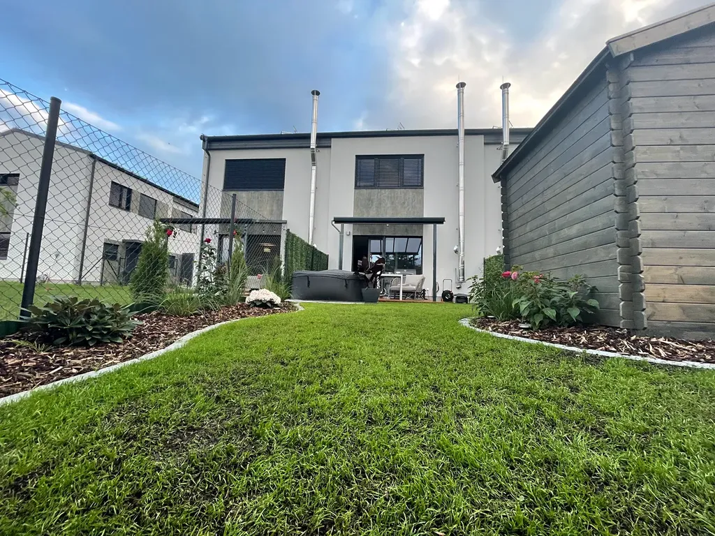 Jedná se o novostavbu rodinného domu (Energetická třída B - velmi úsporná) se třemi bytovými jednotkami. Každá z jednotek je se samostatným vchodem, ke každé náleží vlastní oplocená zahrádka s terasou a pergolou 3x3m s přímím vstupem z obývacího pokoje a zahradním domkem 2x2 m, dvě vymezená parkovací stání na uzavřeném/oploceném pozemku s pojezdovou bránou na DO.