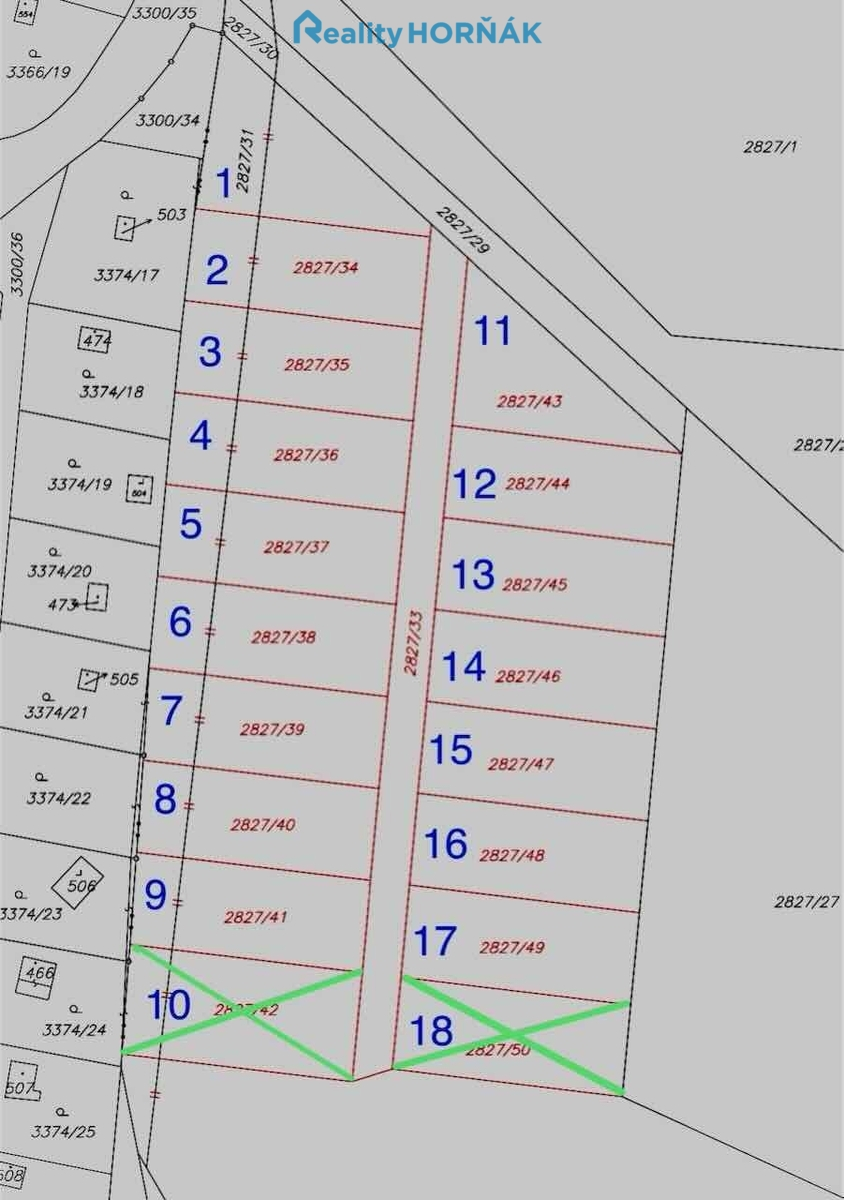 Z osmnácti vymezených parcel je jich v současné době v aktivní nabídce čtrnáct. Parcely, označené ve schématické fotografii čísly 9, 10 a 18 jsou prodány, parcela 11 je z prodeje v současné době vyřazena.