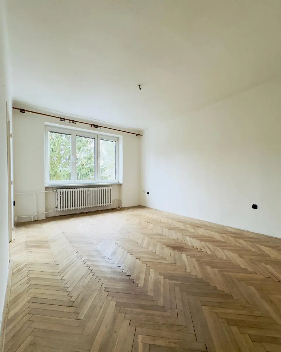 Obývací pokoj (17,3 m): koberec s možností odkrytí zachovalých parket