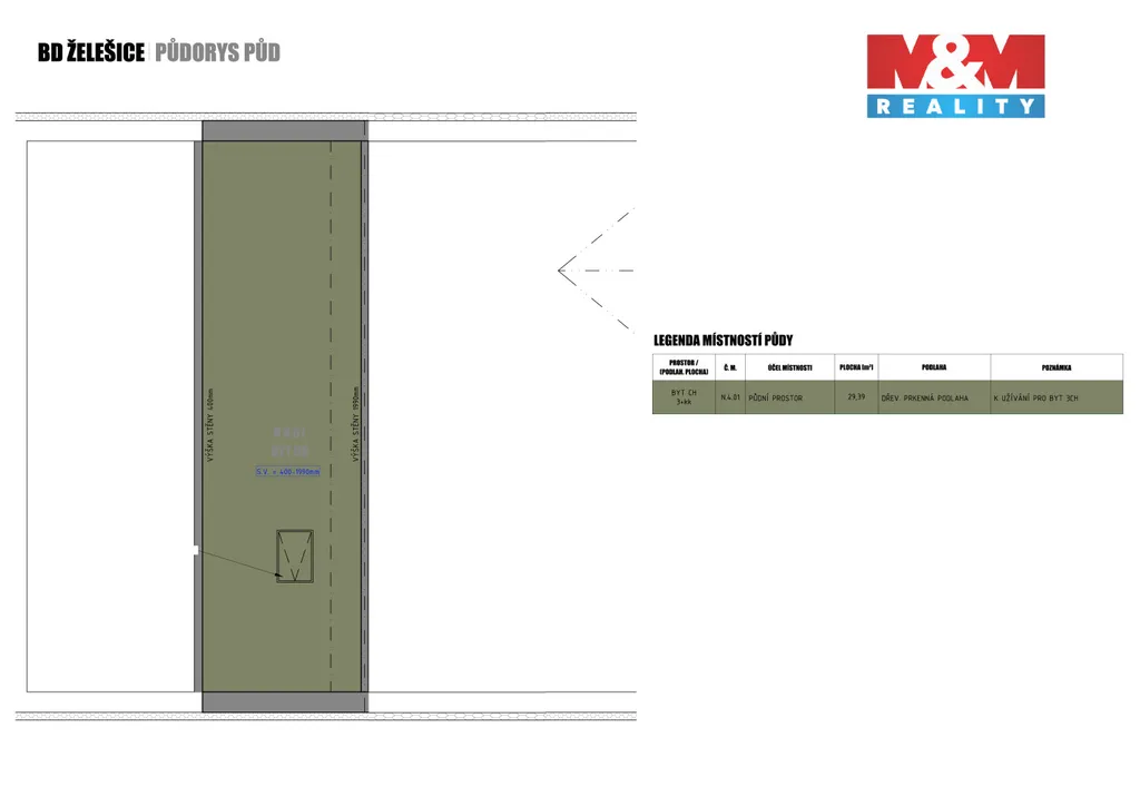 Dům má energetickou třídu B a centrální plynové vytápění. Součástí bytu je navíc kromě šatny přímý vstup na půdní prostor 29 m², jež nabízí další možnosti využití.