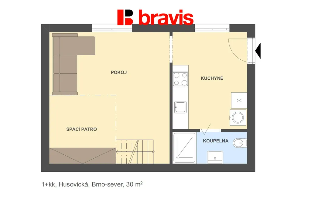 Ve výhradním zastoupení majitele nabízíme k dlouhodobému pronájmu částečně zařízený byt o dispozici 1+kk na ulici Husovická v Brně. Byt se nachází v 1. patře cihlového domu. Celková plocha bytu je 30 m2.