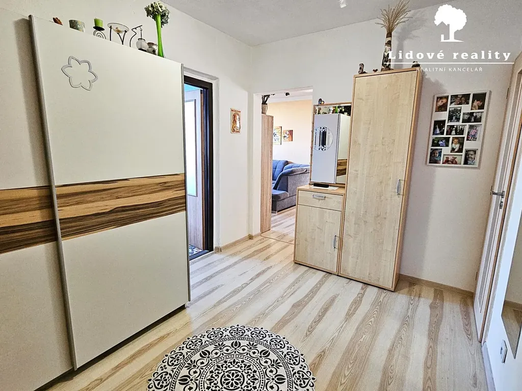 Vstup do bytu vás uvítá velkorysou předsíní, ze které se dostanete do všech místností. Prostorná kuchyně, srdce domova, je vybavena praktickou rohovou kuchyňskou linkou včetně všech spotřebičů, což vám usnadní každodenní přípravu jídla. Z obývacího pokoje je vstup na prosklenou lodžii, kde si můžete vychutnat ranní kávu i večerní odpočinek.