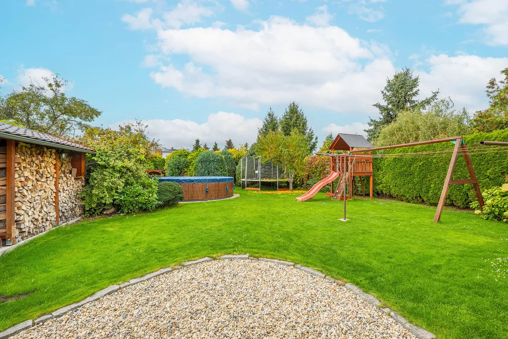 Ráda bych vyzdvihla prostornou zahradu za domem o výměře 655 m², která je ideální pro děti, relaxaci i společenské aktivity. Příjemným bonusem je automatická sekačka, která vám zjednoduší její údržbu.
