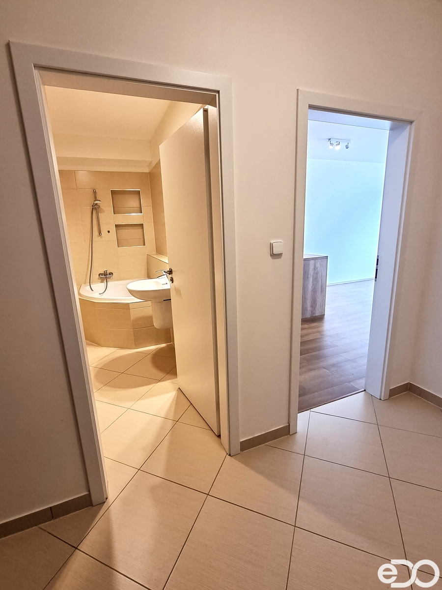V zastoupení majitele bych Vám rád nabídl k pronájmu moderní bytovou jednotku o dispozici 2+kk a celkové ploše 59 m2 v novostavbě z roku 2019, která se nachází v 1. patře atraktivní lokality, Praha - Štěrboholy, ulice Kryšpínova. Obytná plocha bytu je 54 m2 a má samostatnou, prostornou ložnici a obývací pokoj s kuchyňským koutem (kuchyňská linka Oresi na míru, varná deska, elektrická trouba, digestoř), nová pračka a lednička může být dodána majitelem. Koupelna je velmi nadstandardní, prostorná, s rohovou vanou, závěsným WC a žebříkovým radiátorem. V bytě se nachází i komora vybavená regály a dalšími možnostmi pro úložné prostory. V celém bytě LED osvětlení, přípojky na internet, kabelovou TV, telefon. Podlahy: dlažba (chodba, komora, koupelna) a vinyl (pokoje a kuchyň), vytápění dálkové, okna jsou na jihovýchodní světovou stranu. Příslušenstvím je balkon o výměře 5 m2, na který je vstup z obývacího pokoje.