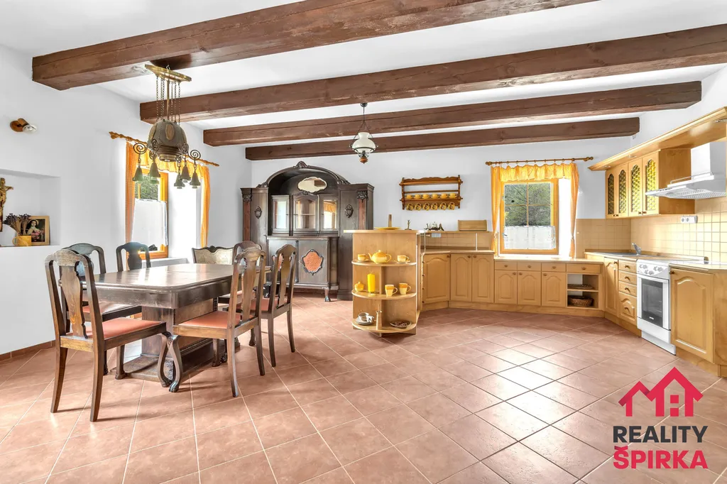 Jednotka 2+kk nabídne velkou stylovou místnost se stylovými krovy, kuchyň spojenou s obývákem, krb s teplovzdušnými průduchy, pokoj, spižírnu, koupelnu, WC. Vše doladěné starožitnými prvky.