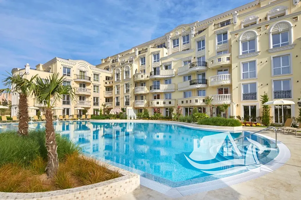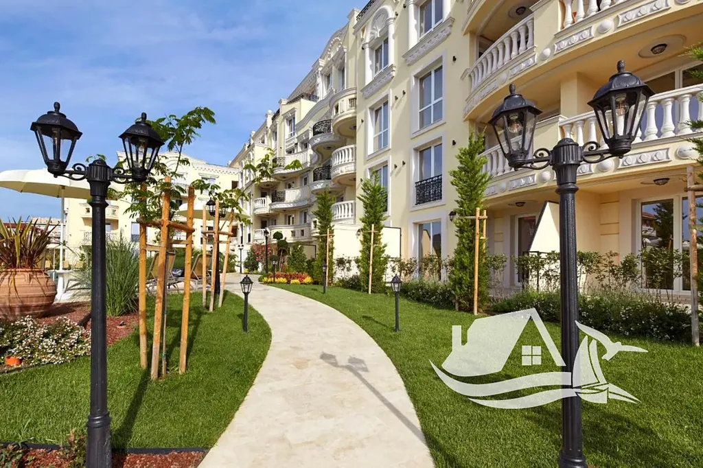 Mezonet se nachází v pečlivě udržovaném komplexu, který patří k nejvyhledávanějším na jižním bulharském pobřeží. Od široké písečné pláže vás dělí přibližně 250 metrů klidné chůze a celé okolí působí upraveně, zeleně a bezpečně. Je to místo, kde se spojuje rekreační atmosféra s komfortem celoročního bydlení.