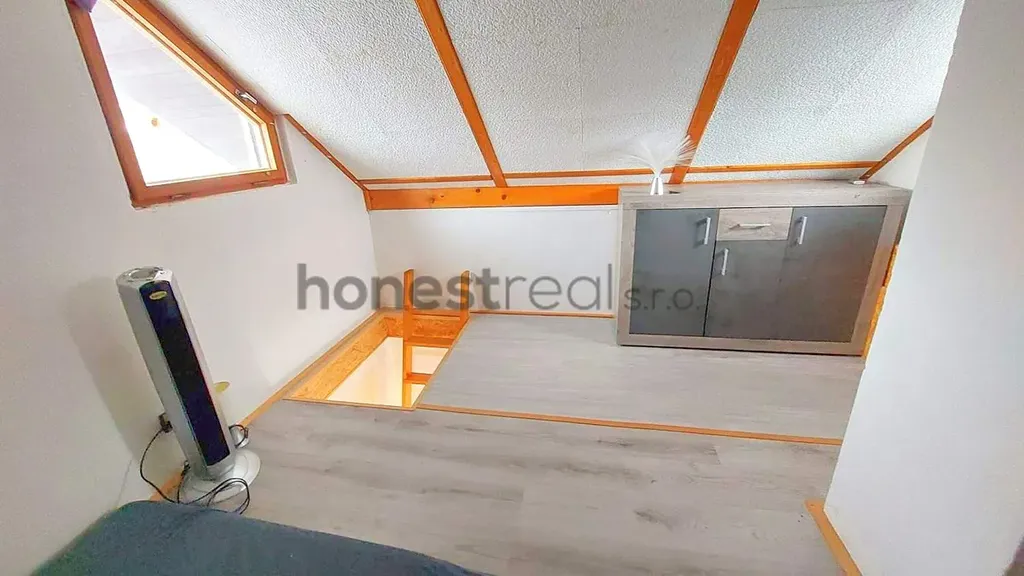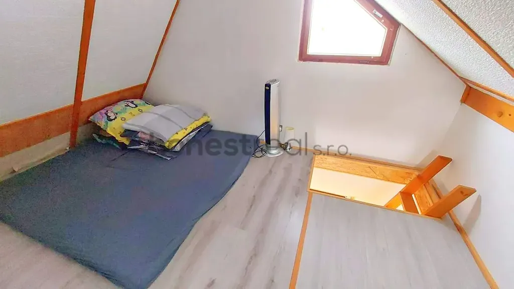 žebřík do podkroví – ložnice 12 m2, nižší strop 1,50 m.