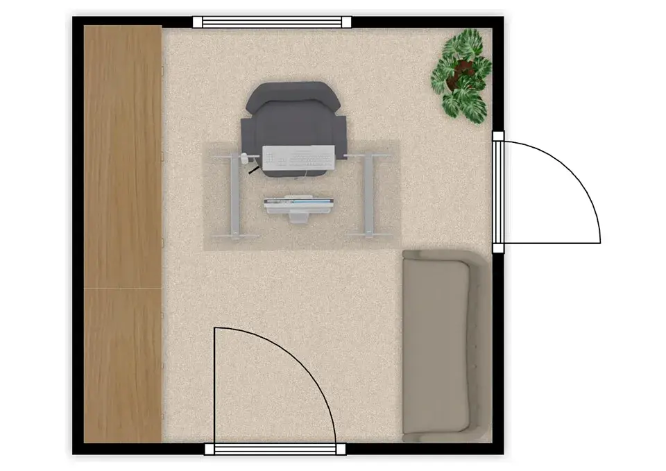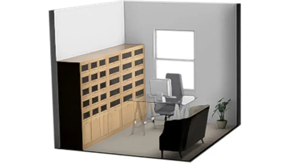 Nabízený prostor tvoří samostatná menší kancelář o velikosti cca 12 m2, vhodná pro jedno až dvě pracovní místa. Místnost se nabízí bez vybavení. Kancelář disponuje oknem orientovaným do klidné části objektu. Na chodbě jsou společné prostory jako je WC nebo zasedací místnost, kterou si lze pronajmout za poplatek. Zasedací místnost je vybavena velkým stolem se židlemi, křesly, televizemi a dalším nábytkem včetně kuchyňské linky s dřezem a lednicí.