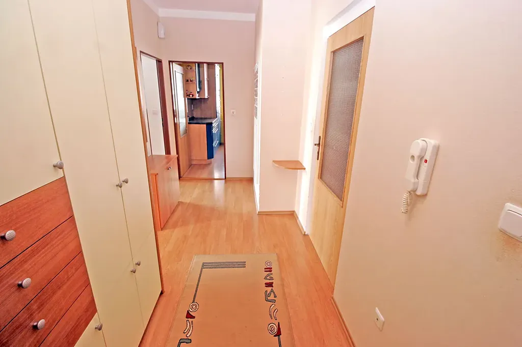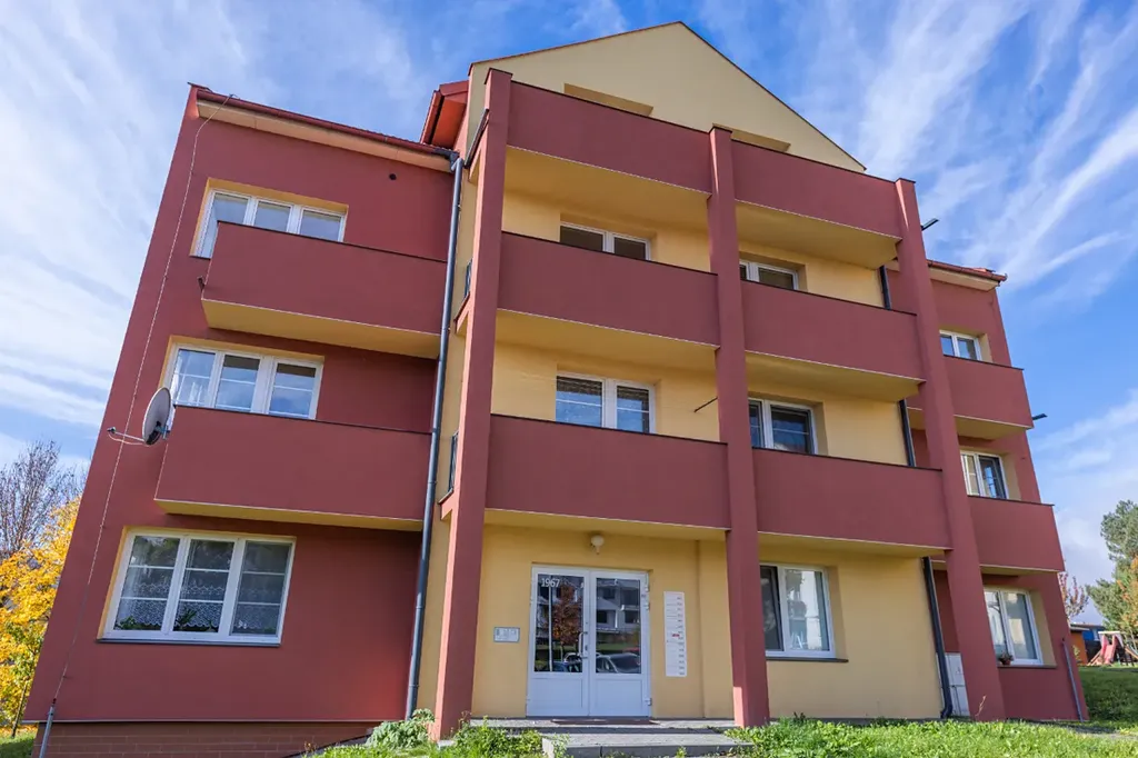 Byt s výbornou dispozicí se nachází ve 2. NP (1.patro) čtyřpodlažního bytového domu bez výtahu, má výměru 62,2 m2 (+ 4 m2 lodžie a + sklep 6,1 m2). Dům byl postaven a zkolaudován v r. 2003, je zděný a nachází se zde pouze 11 bytových jednotek. Plastová okna, na podlaze dlažba (koupelna, WC) a plovoucí podlaha, vnitřní dveře dýhované.