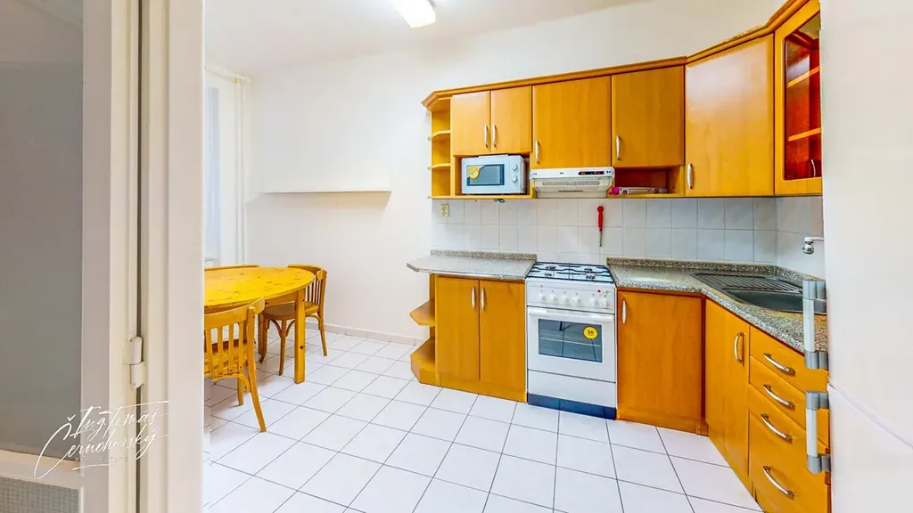 Dispozice bytu je praktická a dobře promyšlená. Dvě lodžie orientované na jihovýchod zajišťují dostatek denního světla a příjemné slunce zejména v dopoledních hodinách. Byt je částečně vybavený a nabízí nadstandardní množství úložných prostor dvě velké vestavné skříně a samostatnou místnost, kterou lze využít jako komoru nebo šatnu dle potřeb nájemníků. K bytu dále náleží sklep a k dispozici je také další komora umístěná na chodbě ve společných prostorách domu.